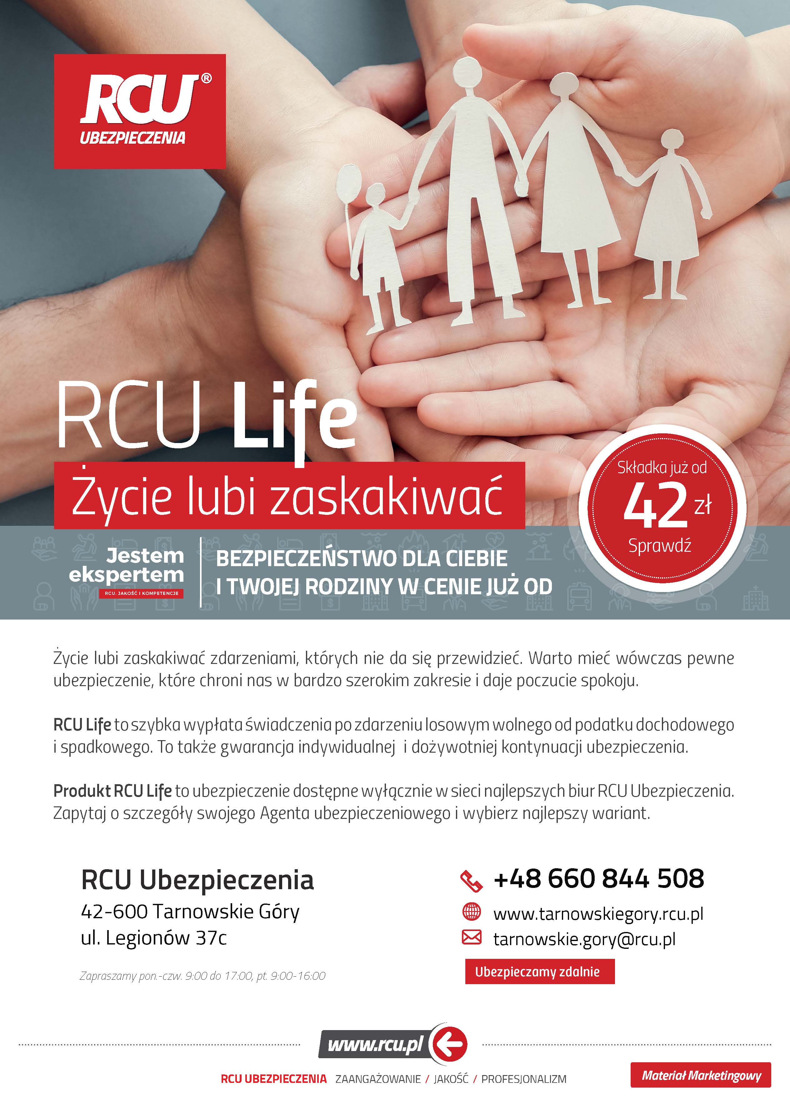 Agencja Ubezpieczeniowa grupy RCU Ubezpieczenia w Tarnowskich Górach. Oferujemy ubezpieczenia na życie, ubezpieczenia majątkowe dom/mieszkanie, ubezpieczenia komunikacyjne OC, AC, ASS, turystyczne, zdrowotne, OC w życiu prywatnym i zawodowym, ochronę prawną, gwarancje, ubezpieczenie maszyn, sprzętów, maszyn. Polecamy Pakietowe Ubezpieczenia Małych i Średnich Przedsiębiorstw. Oferujemy produkty własne oraz 30 Towarzystw m.in.: Warta, PZU, Pru, Leadenhall, Compensa,MTU, Interrisk, Balcia, TUZ Ubezpieczenia, Ergo Hestia, Wiener, HDI, Generali, Allianz, Proama, Generali AGRO, Uniqa, Euroins, Link4.
